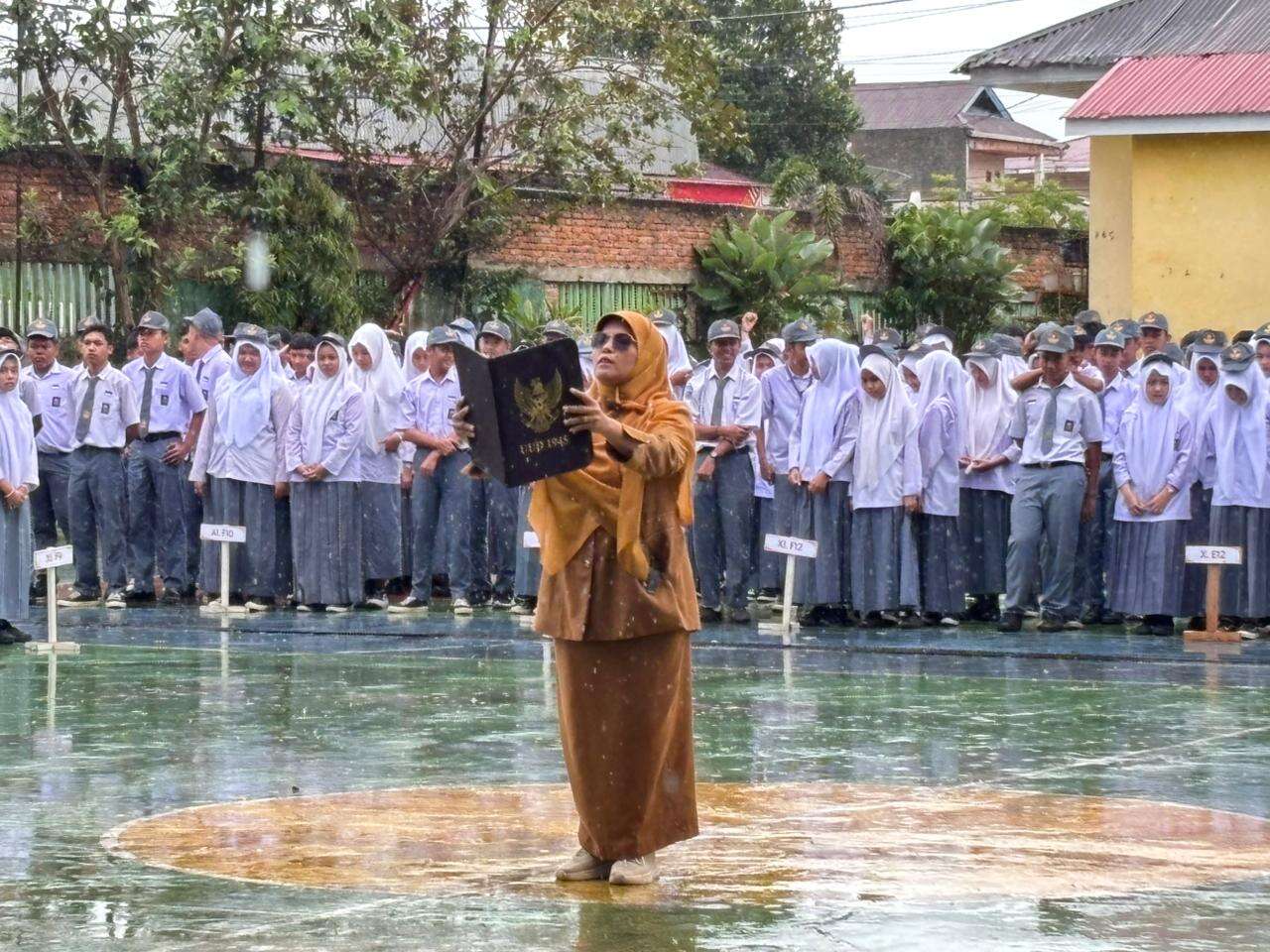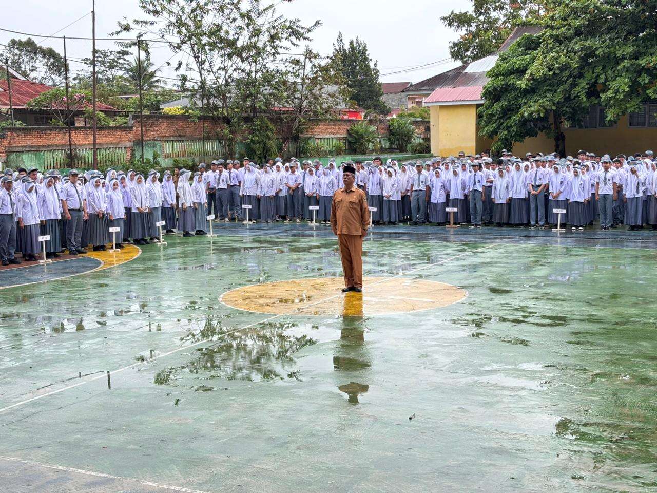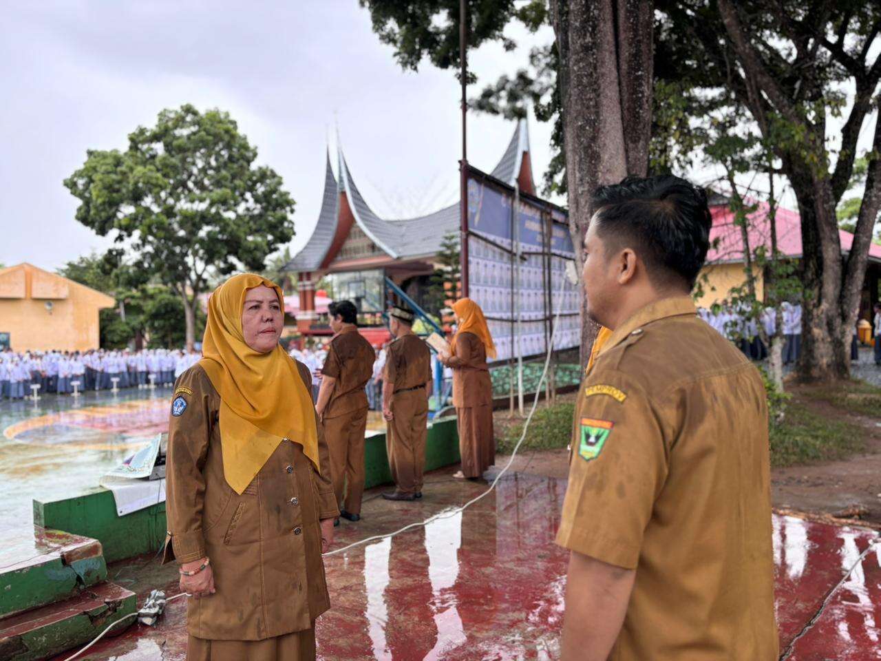 Diguyur Hujan, SMAN 3 Payakumbuh Tetap Gelar Upacara Hari Guru Nasional 2025