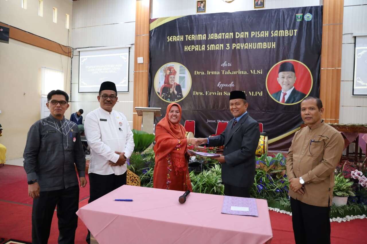 SMAN 3 Payakumbuh menyampaikan apresiasi setinggi-tingginya kepada Ibu Dra. Irma Takarina, M.Si atas pengabdian dan dedikasi selama memimpin sekolah. Di saat yang sama, keluarga besar ACASIA memberikan sambutan hangat kepada Bapak Drs. Erwin Satriadi, M.Pd sebagai pemimpin baru yang akan melanjutkan estafet kepemimpinan.
