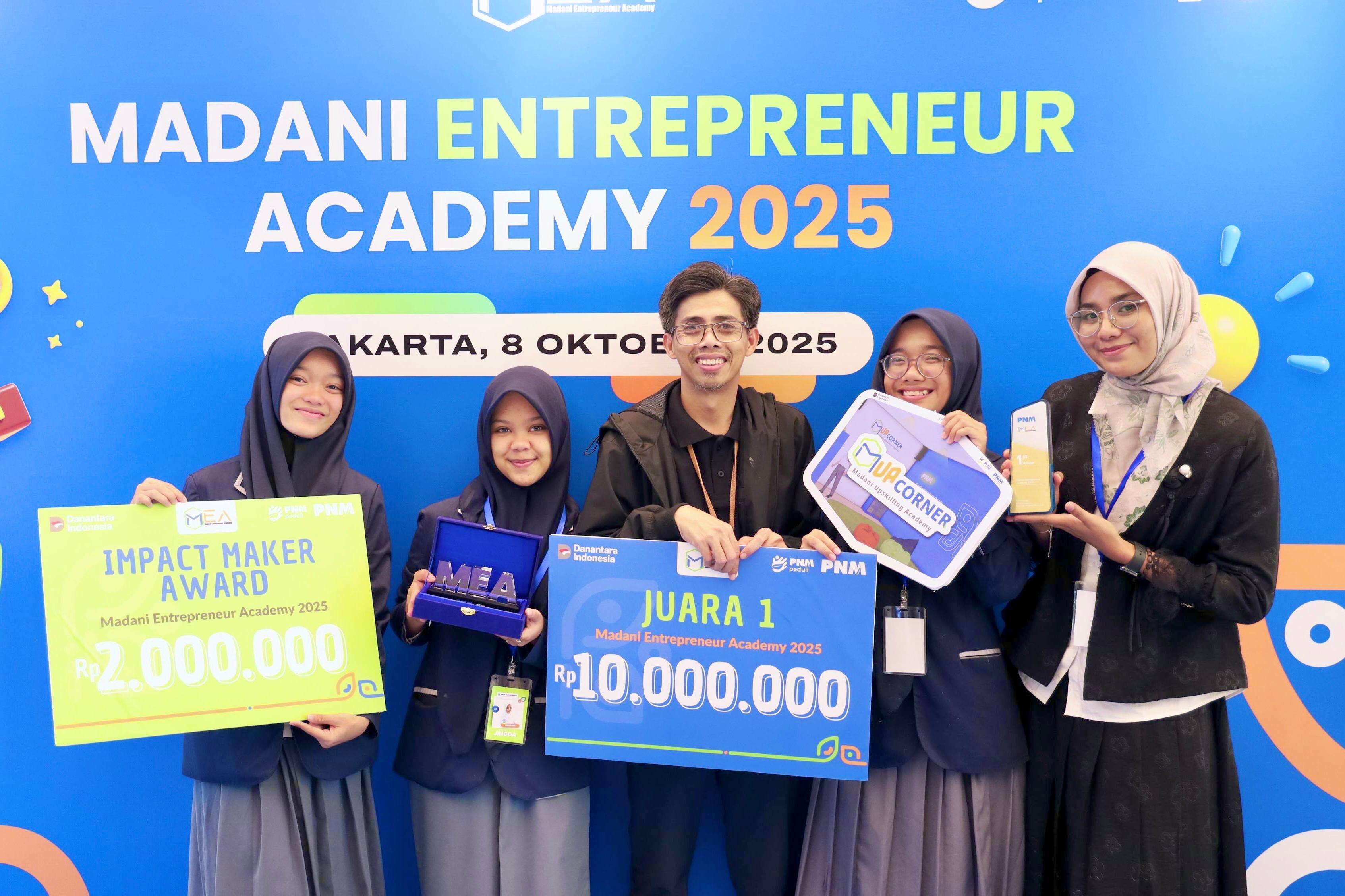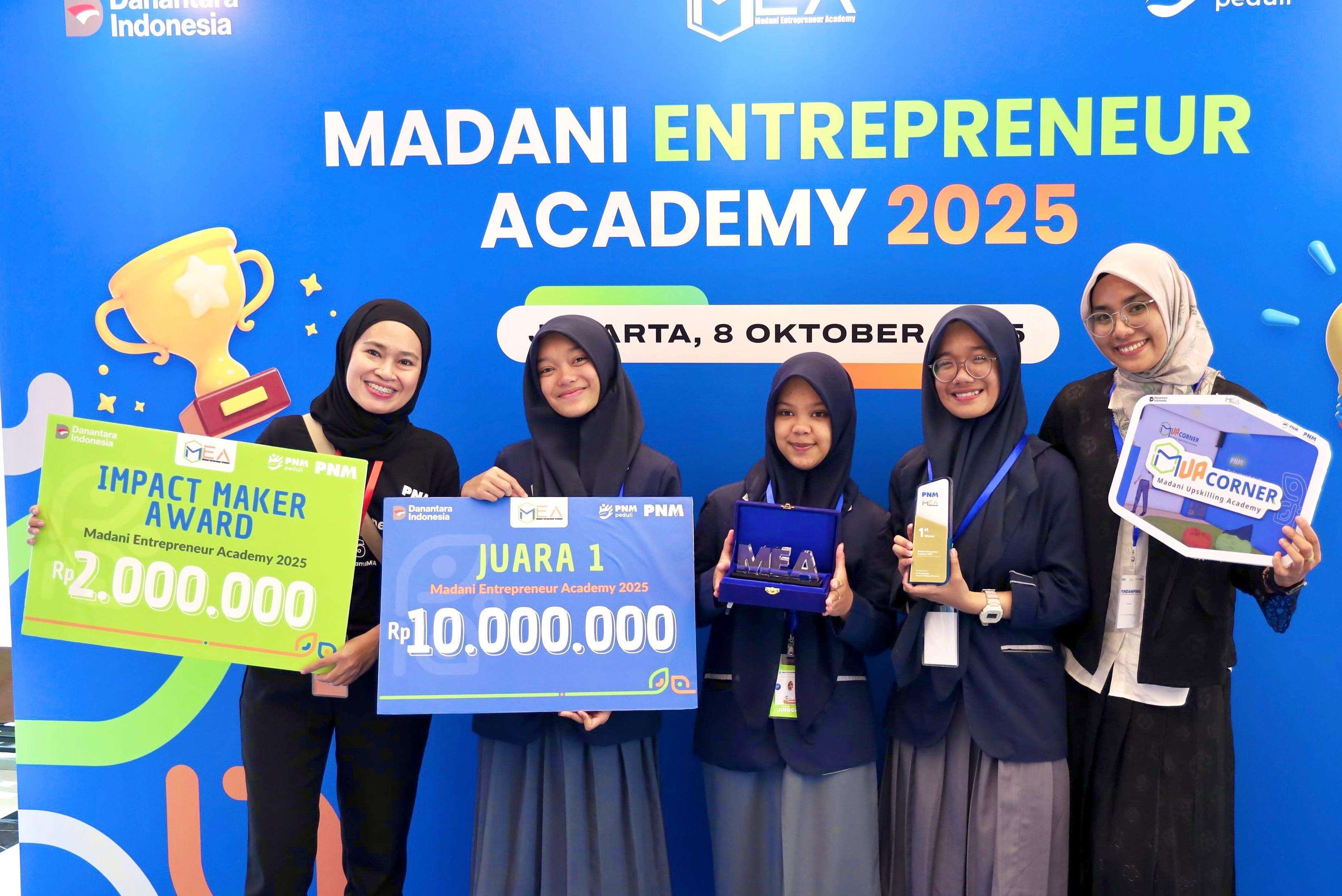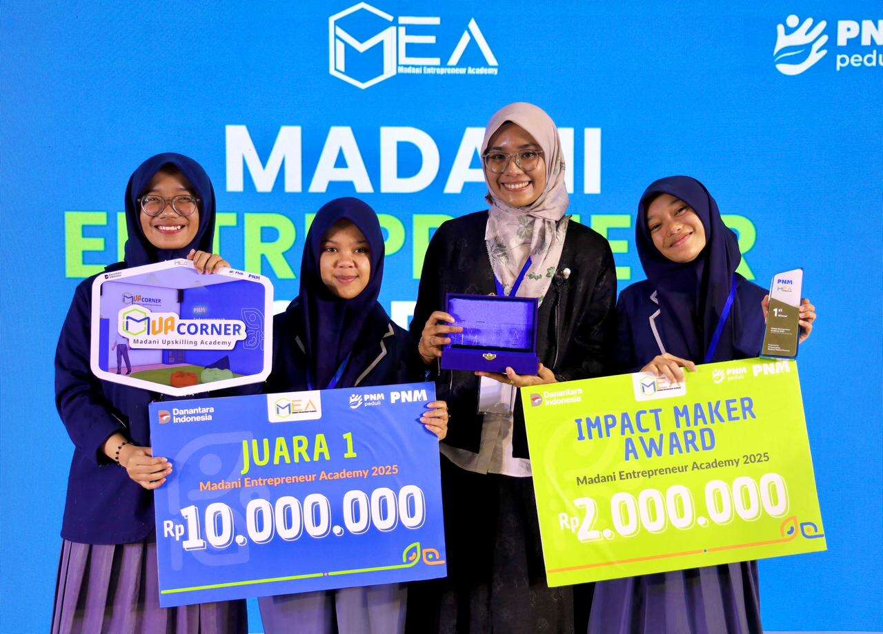 Tim yang beranggotakan Ahwana Ramadhani, Jingga Permana Anugra, dan Syaqifa Adisti Arsy ini sukses meraih dua penghargaan sekaligus, yakni Best Impact Maker Award dan Juara 1 MEA 2025.